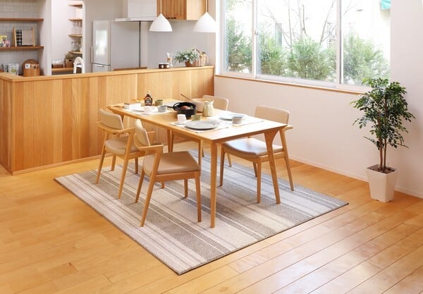 ●スタイリッシュなストライプ柄でお部屋をお洒落に演出します。食事する場所のホコリの舞い上がりを防ぎ椅子の出し入れによるキズ防止にもなります
